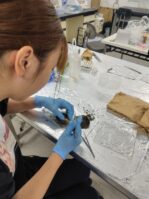 2025年9月16日(火)-17日(水)の2日間、アコヤガイ足糸のサンプリングのため、三重県志摩市にある(株)ミキモト真珠研究所を石崎教授および学部4年生の上島さんが訪問しました。